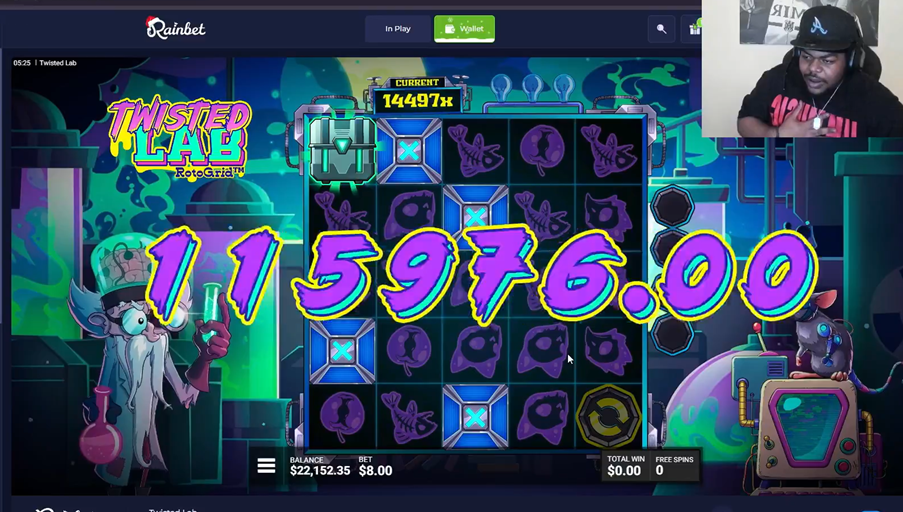 Summary: Kick streamer Shnaggy enjoyed his time in the laboratory this week. The American gambler was playing with stakes of just $8 on the Hacksaw Gaming game Twisted Lab when he hit a multiplier of 14,497x. That turned his wager into a staggering $115,976. Understandably, the mid-sized streamer went crazy when the total racked up on screen.