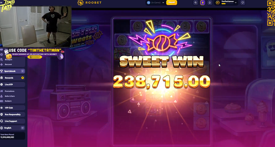 Summary: Timthetatman was playing on Retro Sweets by Push Gaming this week. He managed to turn his stake of $25 into a payday of $238,715 on the sweet-themed game. That means he hit a multiplier of 9,549x to do so. “Retro Sweets doesn’t pay, Retro Sweets doesn’t pay… says who? Says who?” The Kick streamer yelled as the win racked up on screen.