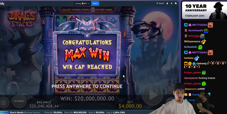 Summary: Drac’s Stacks is an important slot for Swedish content creator Roshtein. He hit his biggest-ever win on the Massive Studios slot in July last year, bagging $45.4m to beat Trainwreck’s $37.5m on Hex Appeals. The slot paid out big again this week, this time to the tune of $20m. It is thanks in large part to the huge stakes Rosh was playing with, staking $4,000 per spin on the game.