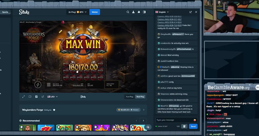 Summary: Our final entry into this Big Win Wednesday is a little bit different – that’s because it features Eddie Craven, who is actually the founder and owner of crypto casino Stake. You could argue that being the owner of his own casino could give him a slight edge over the exclusive Stake slot he was playing, Waylanders Forge. Either way, Eddie hit the max win on the game to turn his stake of $2 into a staggering $160,170.