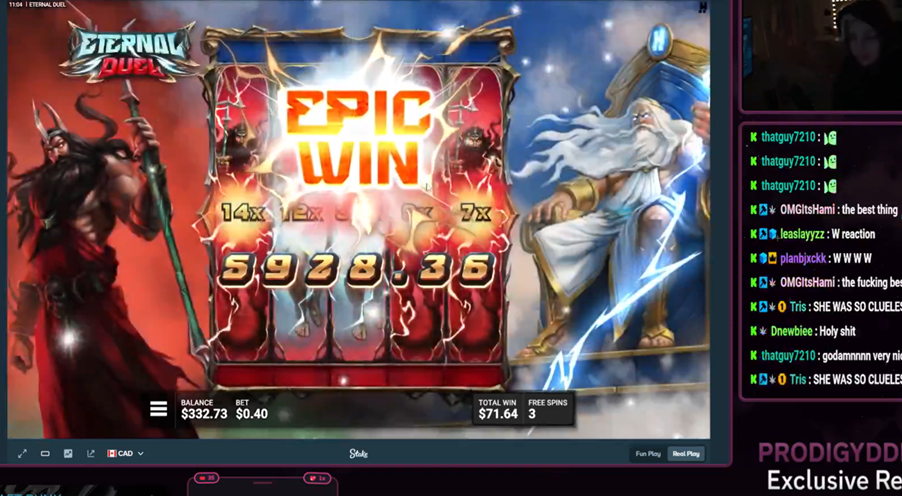 Summary: Onduris is the final streamer to make our Big Win Wednesday list this week. The content creator was playing with bets of $0.40 on Eternal Duel when he managed to hit the big win, turning his bet into $5,928.36 in a single spin. The Hacksaw Gaming slot, released at the end of last year, has a medium to high volatility.