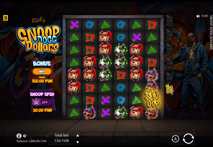 Snoop Dogg Dollars features a 6×8 grid packed with features. Snoop helps you score wins via cascades on every win, increasing multipliers, free spins, and wild symbols. Its highly volatile and has a return to player (RTP) of 97. The max win stands at 10,000x your bet. It also features a hip hop soundtrack that will keep Snoop fans entertained.